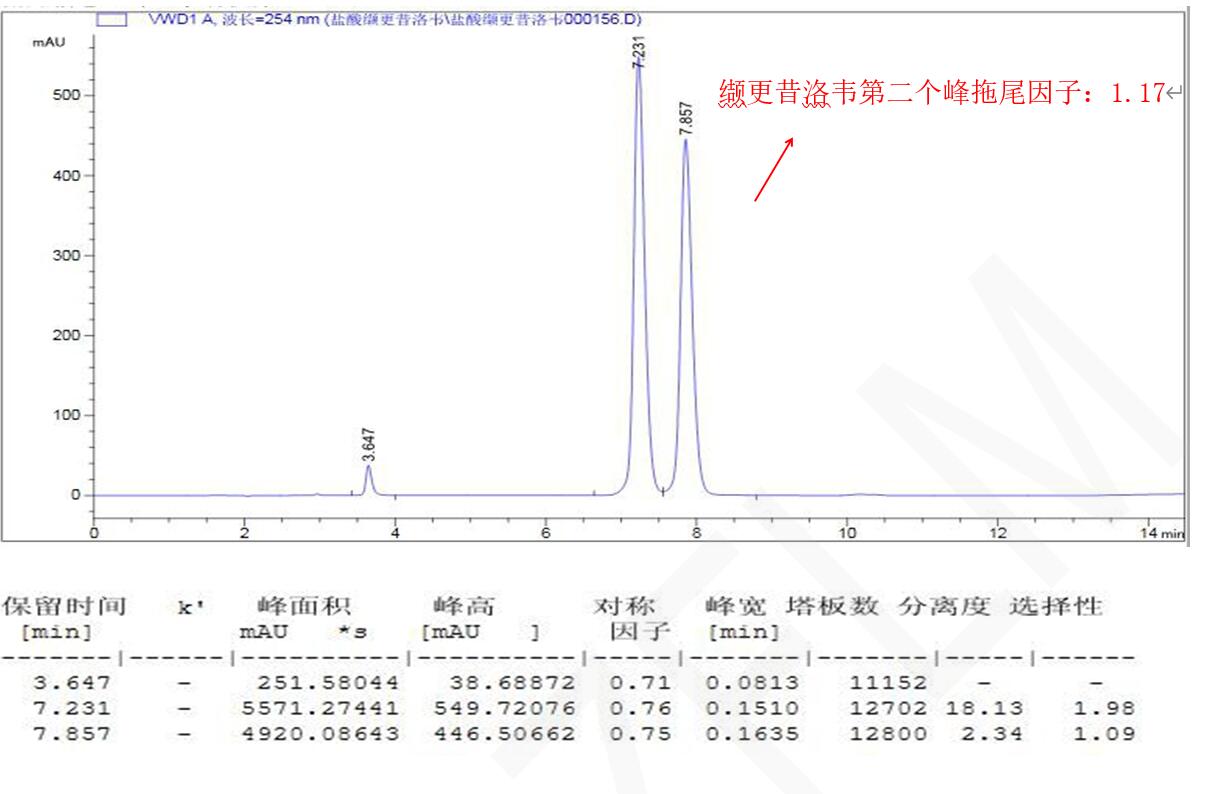 菲羅門液相色譜柱對鹽酸纈更昔洛韋的分析色譜柱 1:Titank C18 3μm 150×4.6 mm(貨號:FMF-5559-EONU)