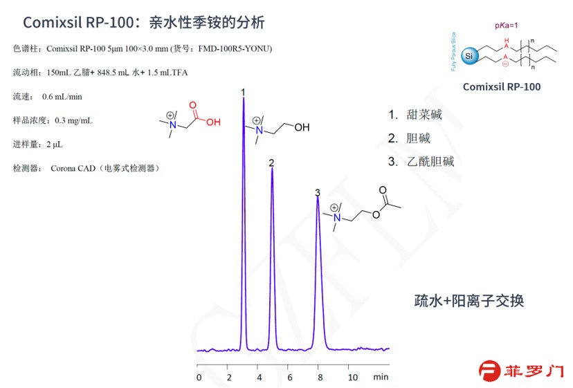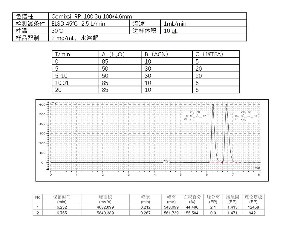 使用Comixsil RP-100色譜柱,通過陽離子離子交換和疏水作用保留和分離這兩個(gè)化合物。