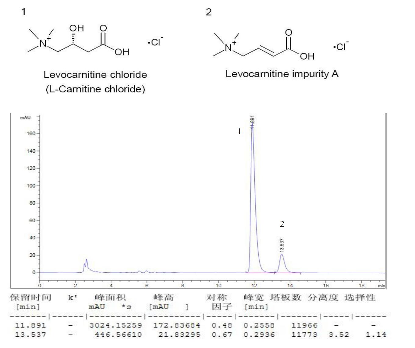 檢測方法的選擇:由于左卡尼汀和雜質(zhì)A在純水中不易被檢測到,因此需要選擇合適的檢測方法,如紫外檢測、熒光檢測、電化學檢測等,以提高檢測的靈敏度和準確性。同時,需要確保檢測方法與色譜柱相兼容。