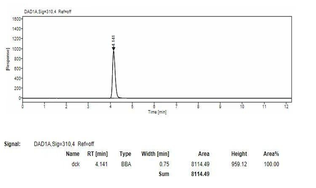 App ID: FLM-T240011 Titank C18 柱對(duì)敵草快二氯鹽、烯酰嗎啉、苯嘧磺草胺檢測(cè) 方法:CCPIA 團(tuán)體標(biāo)準(zhǔn) T/CCPIA 217—2023 色譜柱:Titank C18 5μm 150×4.6 mm (貨號(hào):FMF-5560-EONU) 柱溫:25C° 流速:1ml/min 敵草二綠鹽: 流動(dòng)相:乙腈:庚烷磺酸鈉=10:90 波長(zhǎng):310nm 色譜圖: