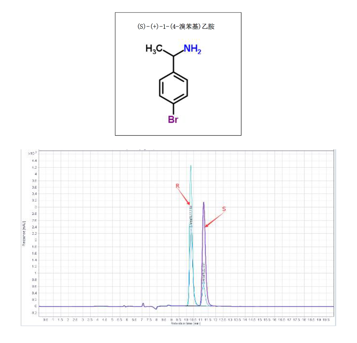 App ID: FLM-B250010 R,S(+)-1-(4-溴苯基)乙胺的手性分析 色譜柱:Chiral MJ(2) 250 × 4.6 mm,5 μm 貨號(hào):FMG-AC5-B03-NFC 流速:0.5 mL/min 波長(zhǎng):230 nm 柱溫:25 ℃ 進(jìn)樣量:1 uL 樣品濃度:N/A 流動(dòng)相:咨詢(xún)銷(xiāo)售 色譜圖: