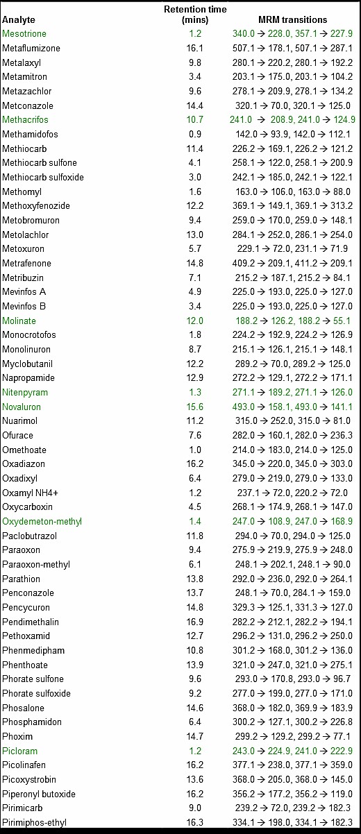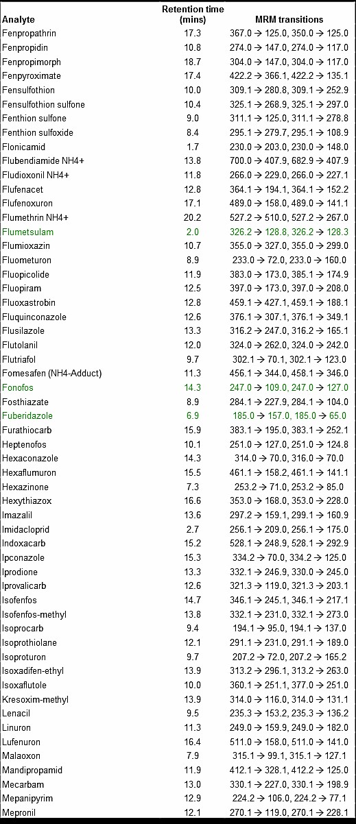 樣品:樣品制備采用QuEChERs方法,用黃瓜基質(zhì)加標0.01mg/kg進行方法驗證。
